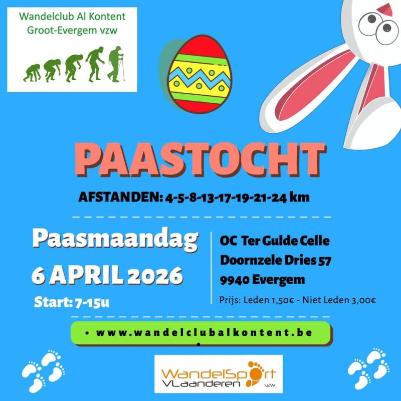 Wandelclub Al Kontent Groot-Evergem vzw is aangesloten bij Wandelsport Vlaanderen onder het clubnummer 3304